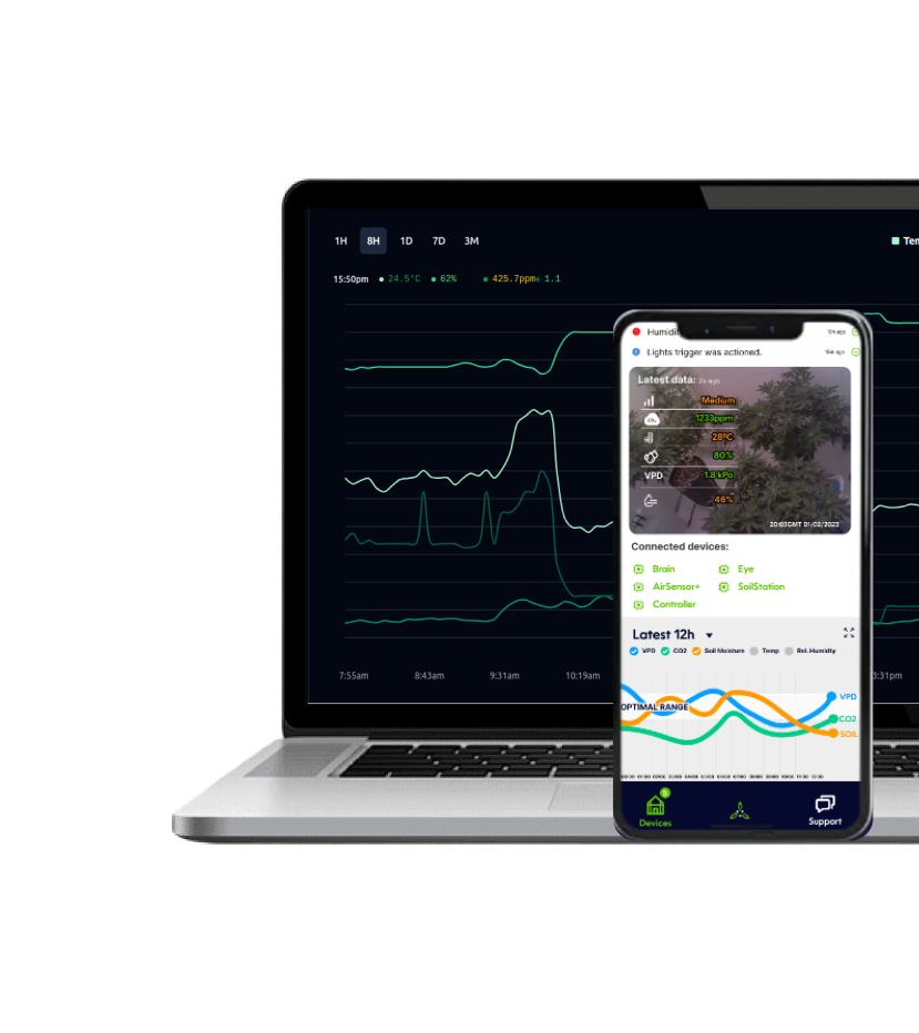 Programe todo seu cultivo uma única vez para manter as condições climáticas ideais de cada semana, altere quando precisar e explore técnicas como drybacks e injeção artificial de CO2, totalmente orientado a dados como nas grandes industrias.